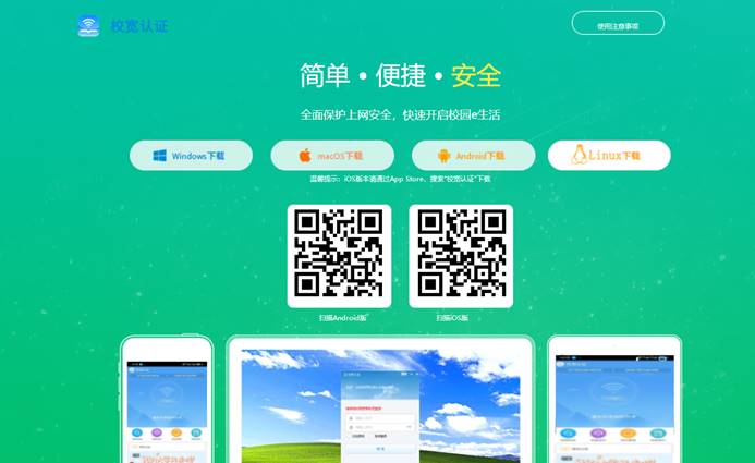 (1) 电脑连接学校有线/WIFI信号(以本校WIFI信号名称为准),在浏览器弹出来的界面选择Windows客户端下载