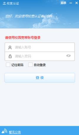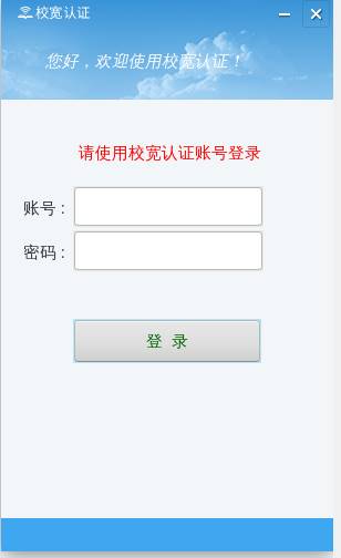 (3) 打开已下载的校宽认证客户端,点击登录,输入已开通的宽带账号密码拨号上网