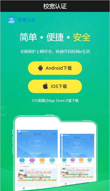 (1) 手机连接学校WIFI信号(以本校WIFI信号名称为准),打开浏览器,访问任意网站,浏览器会自动跳转到客户端下载页面。如无法跳转,请检查当前网络是否为校园网络。